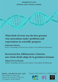 - 'What kind of event was the first genome wise association study? problems and expectations in scientific progress', por Catherine Heeney (Dept. Science, Technology and Innovation Studies, Universidad de Edimburgo)